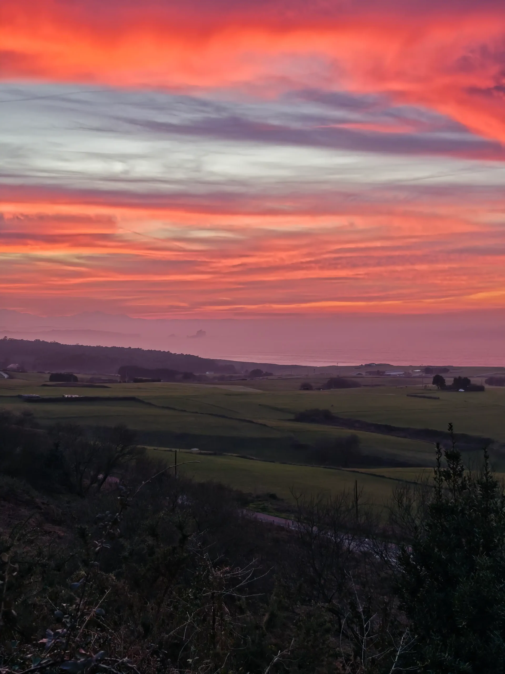 No todo es incomodidad y rachas fuertes. El viento sur nos regala, sin duda, los atardeceres más potentes de la tierruca. Seguramente habrás visto esos cielos que parecen arder, con tonos rojos y anaranjados muy saturados que se reflejan en el mar o en la caliza de Picos.